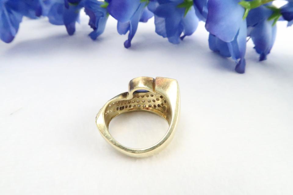 Ring aus 14k Gelb Gold mit Einem Saphir als hauptstein und Diamanten in Brillantschliff