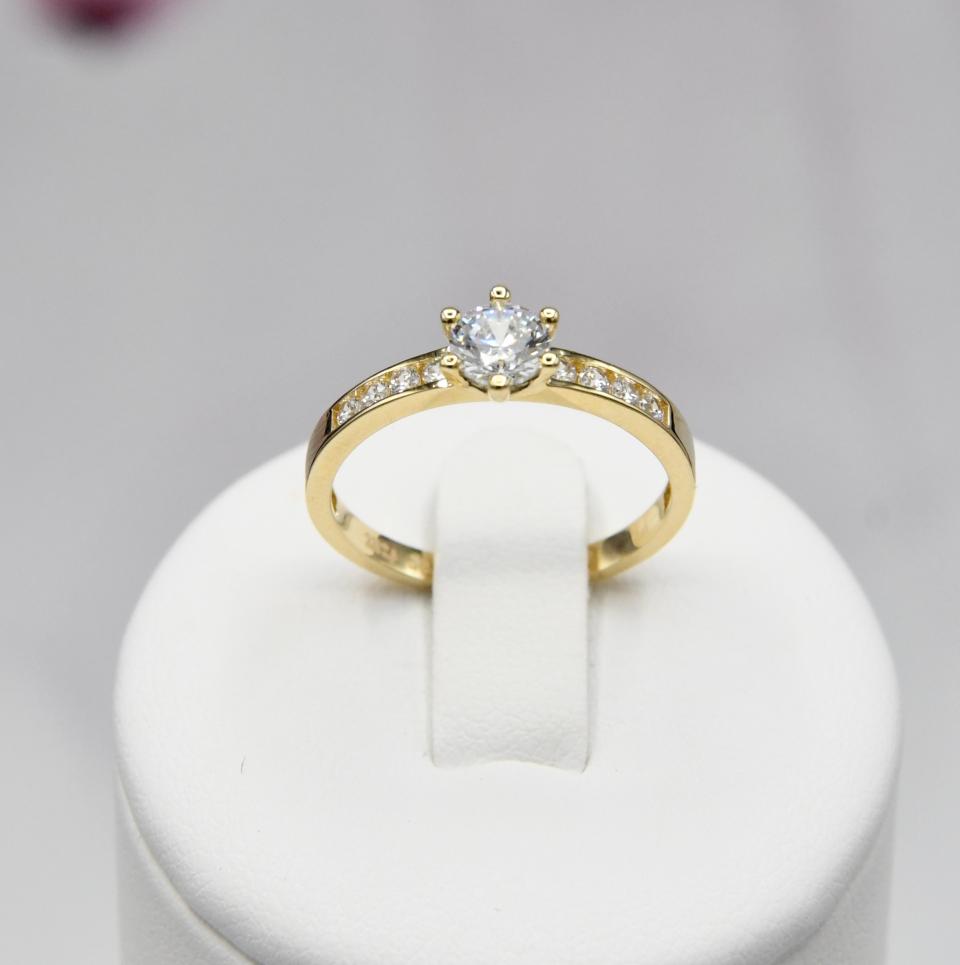 Verlobungsring aus 14k Gelb Gold mit Zirkonia besetzt.